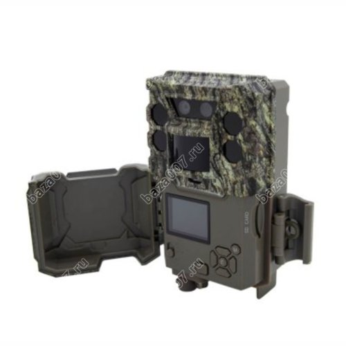 Фотоловушка в водонепроницаемом темно-зеленом камуфлированном пластмассовом корпусе предназначена для наблюдения за животными в их естественной среде обитания. В основе устройства высокочувствительная матрица разрешением 30 Мп, способная формировать видео в формате Full HD 1920x1080 с частотой кадров 30 в секунду. Датчик движения с регулируемой чувствительностью срабатывает на максимальной дистанции 30 метров. Видеофайлы сохраняются на карту памяти объемом до 32 Гб. Питается фотоловушка от четырех или восьми батареек формата АА.